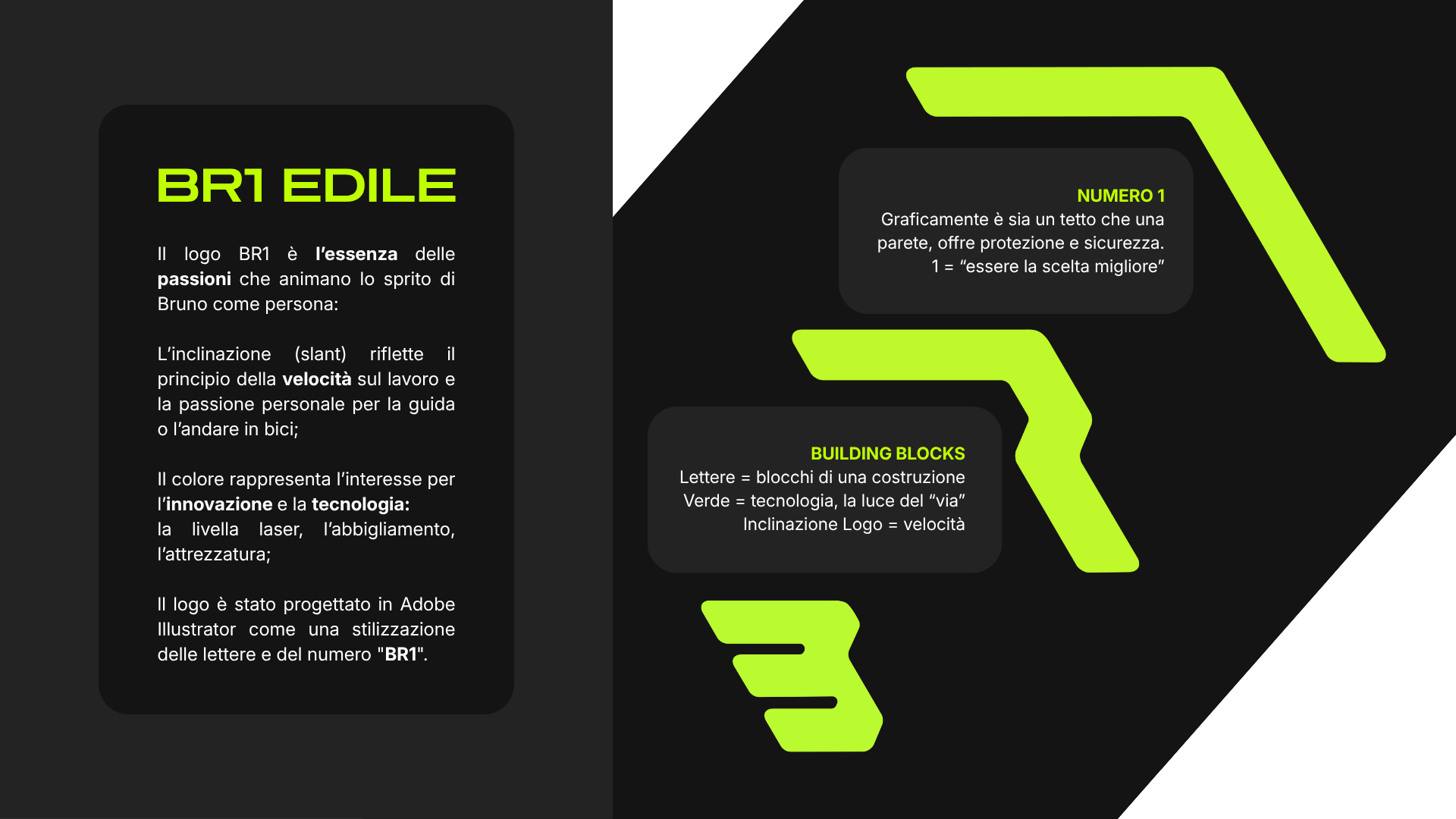Per prima cosa ho individuato il nome BR1, facile da ricordare e graficamente interessante. Poi ho unito gli elementi che maggiormente caratterizzano il lavoro di Bruno stesso, ottenendo un logo minimal, ma di forte impatto.