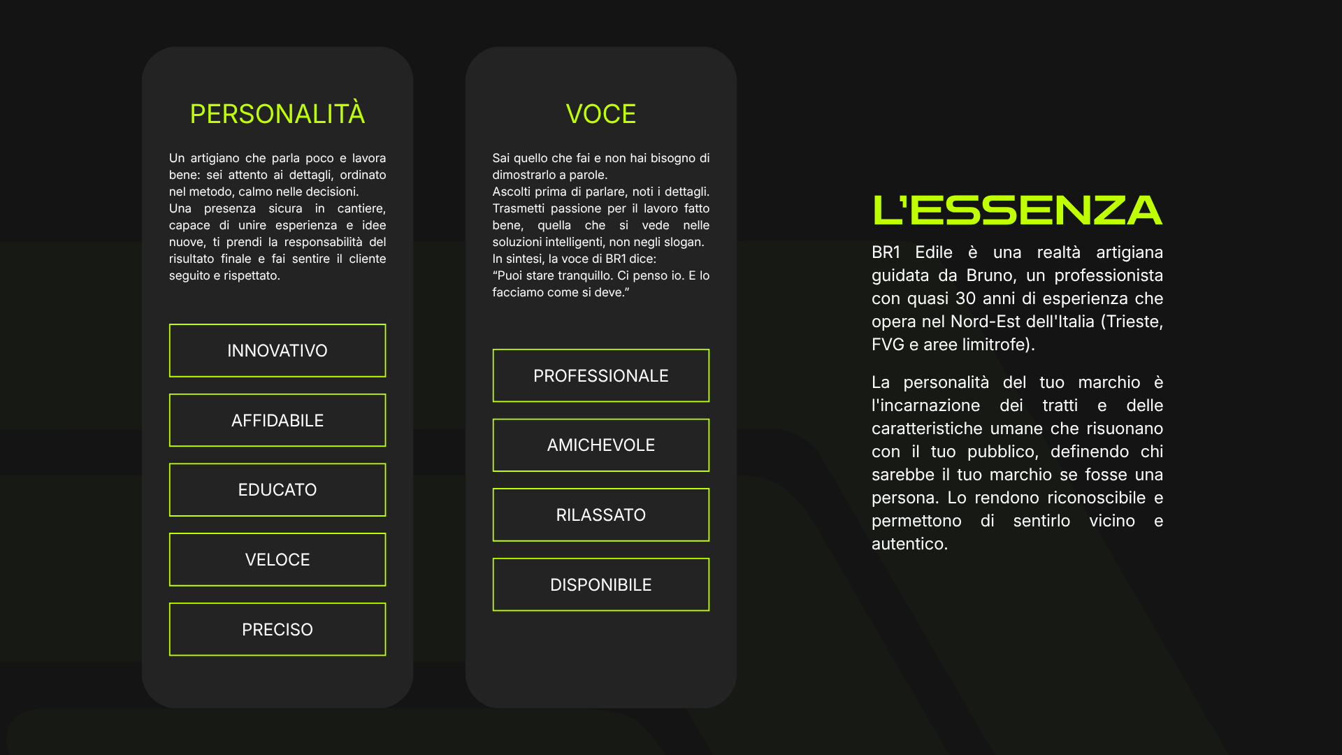 La sfida è stata riuscire a trasmettere i valori fondanti di Bruno in un’identità pulita, che creasse immediata differenziazione rispetto ai competitor locali, che fosse attraente tanto per i privati, quanto per i professionisti (architetti, general contractor, ecc.).